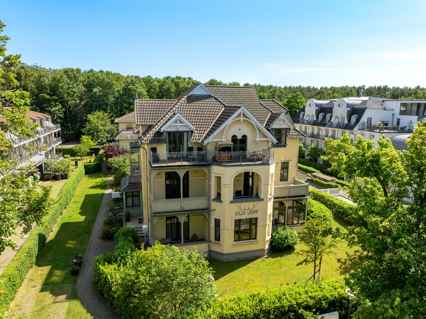 Die Apartmentresidenz Villa Laura wurde im Jahr 2006 im Stil der Bäderarchitektur liebevoll restauriert. Abgeschirmt durch die verkehrsberuhigte „Ostseeallee“ sowie durch einen schmalen Baumgürtel sind die Promenade und der feine Sandstrand schnell erreichbar. Ein Fahrradabstellraum sowie Münzwaschmaschine und Münztrockner stehen zur gemeinschaftlichen Nutzung bereit. Zu den Ferienwohnungen gelangen Sie über die Treppe. Für Ihre Fahrräder gibt es am Haus einen Fahrradabstellplatz.